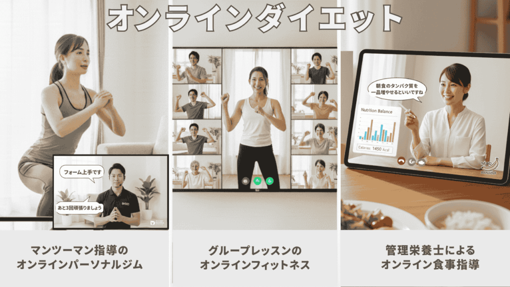 - オンラインパーソナルトレーニング:運動も食事も指導してほしい人向け